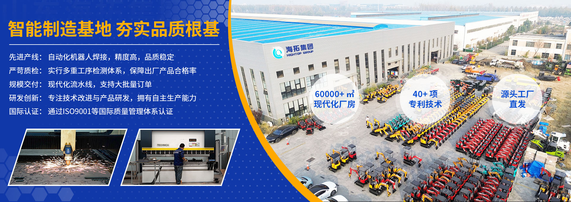 山東海拓機械集團有限公司是一家集科研、生產(chǎn)、服務于一體的大型工程建筑機械設備制造集團,總部位于山東省濟寧市,占地約60000平,員工總數(shù)820余人,是濟寧市“專精特新”榮譽企業(yè)和經(jīng)開區(qū)重點引進項目企業(yè)。海拓集團主要生產(chǎn)銷售小型挖掘機、滑移裝載機、輪式裝載機、翻斗車、割草機、噴涂機等產(chǎn)品。